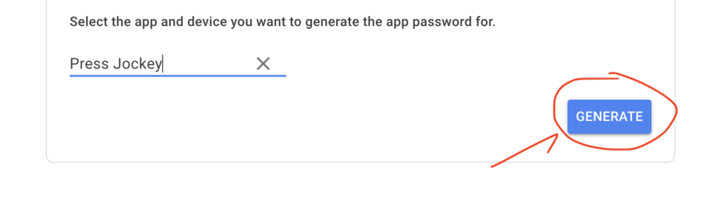 4. You can then input that app password into your settings in Press Jockey, and your account will be connected